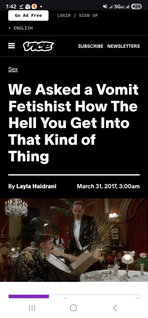- Taboo Transgression: Vomiting is a deeply taboo and socially stigmatized act. For some individuals, breaking such taboos can be a source of intense arousal, much like other โgross-outโ or body-fluid fetishes.